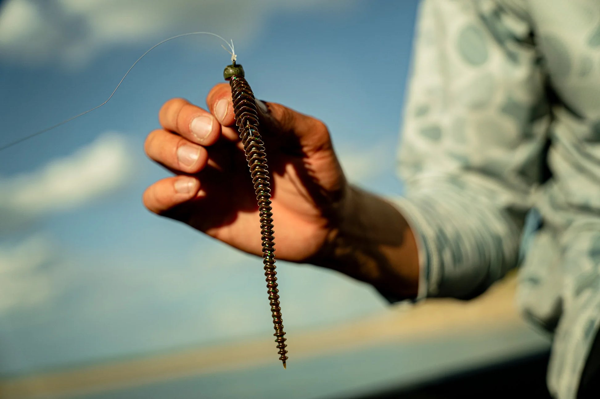Its uniquely shaped head glides through structure and cover while maintaining bottom contact, and the integrated screw-lock keeper holds your bait securely in place with perfect alignment. Finished with a durable powder coat, the Divine Shakey Head is a go-to for big bait finesse presentations that demand performance and reliability.