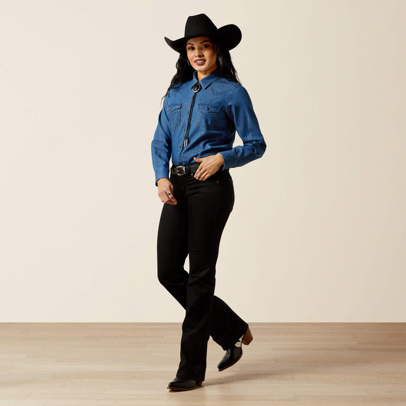 A chambray shirt is a Western wardrobe essential, and this one checks all the right boxes. Pearl snaps? Yep. Traditional pointed yoke? You got it. Tuck it into your favorite riding jean or dress it up with a skirt and hit the town.