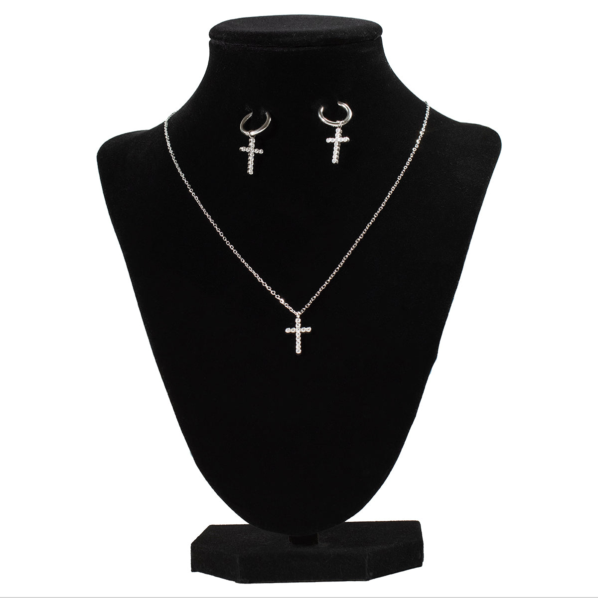 Blazin Roxx Silver Dainty Cross Necklace and Earring Set