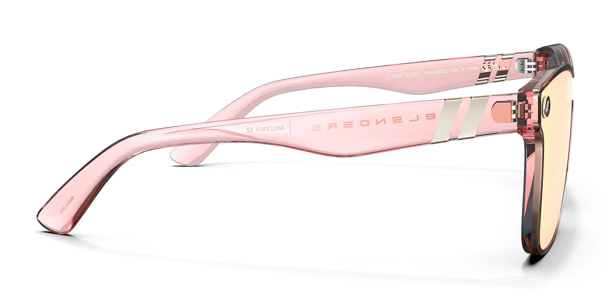 Pink packs a punch. 'Citrus Blast Millenia X2' takes one of our iconic single-lens designs, adds a champagne mirrored effect, and serves it up alongside a stunning crystal pink frame. It’s bright, it’s bold — and yeah, it’s polarized!