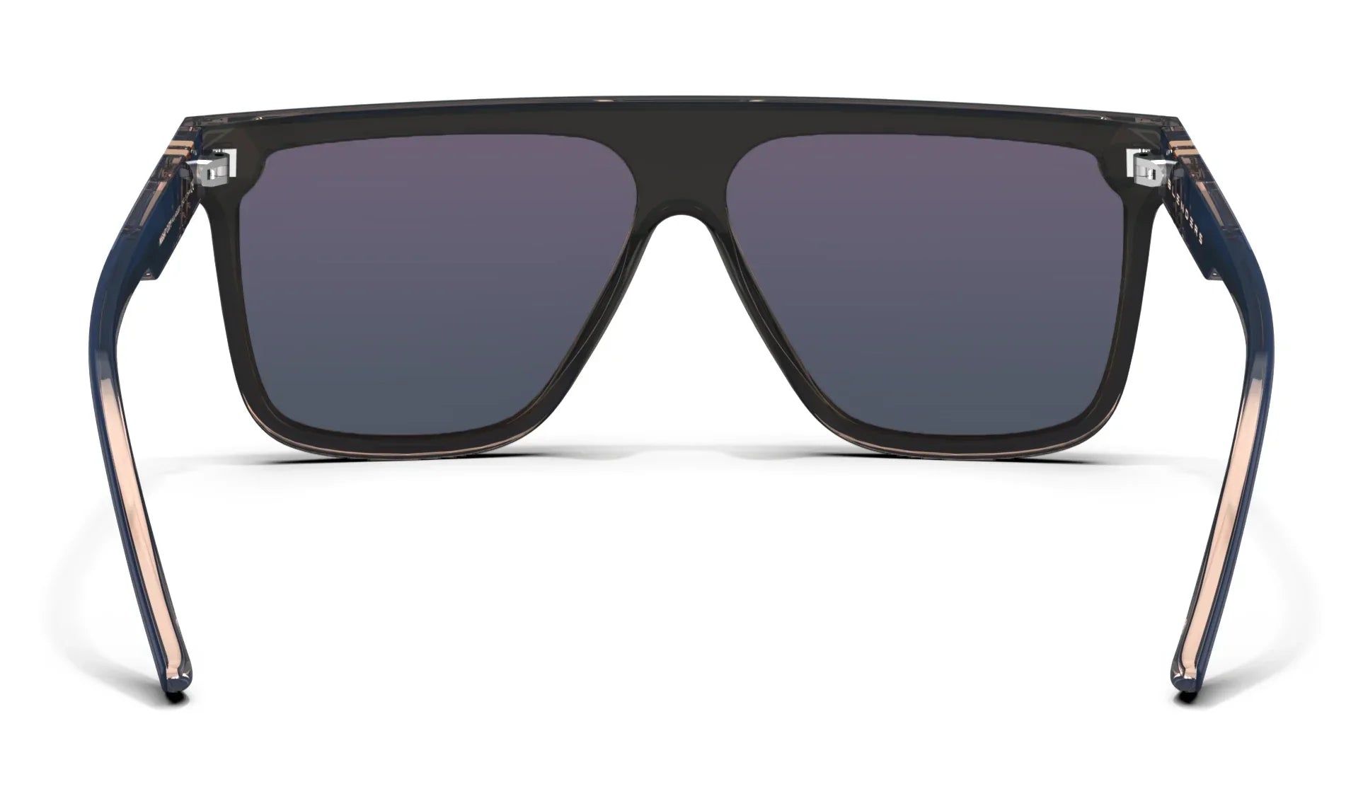 Dueling tones and finishes define the progressive style of 'Night City.' These flat top sunglasses are glossy on their interior and matte on their exterior, and the colorway is characterized by slate and champagne hues. A polarized aqua lens with a rainbow effect is the exclamation point on a bold yet sophisticated look.