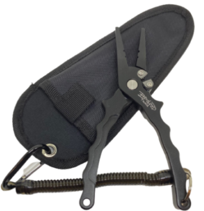 BoneHead 7.5” spring loaded aluminum pliers with carbide line cutters.