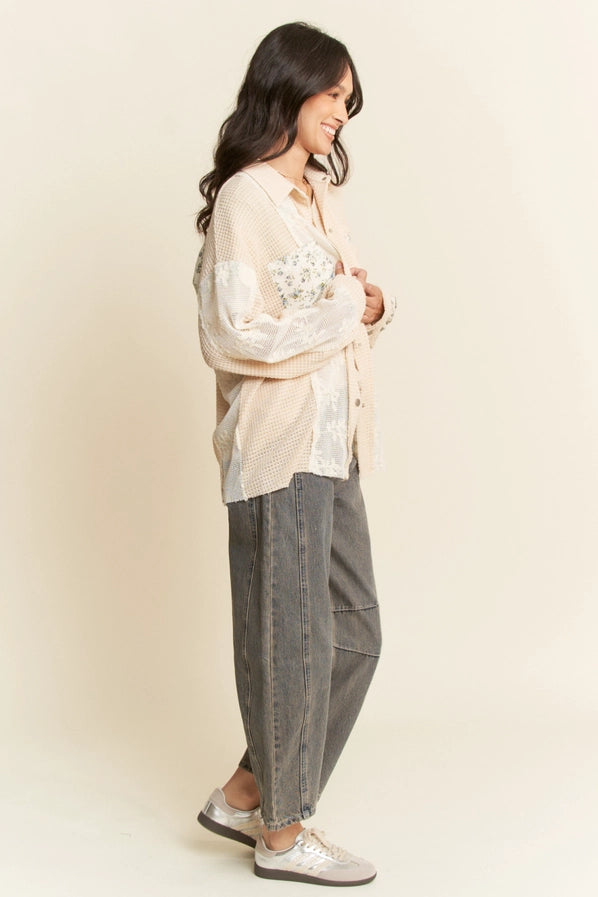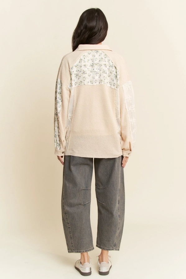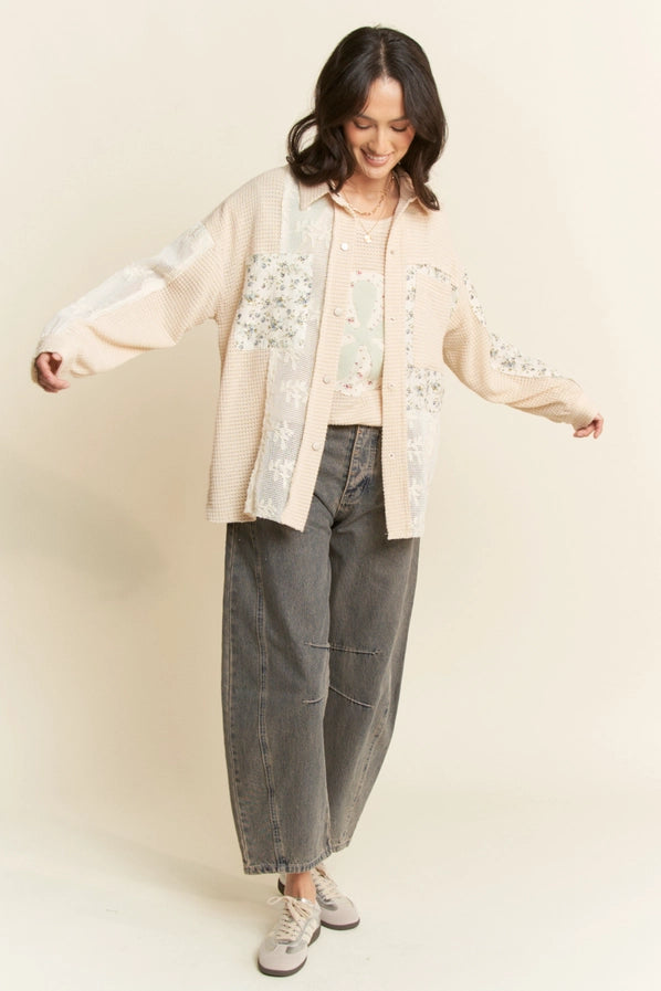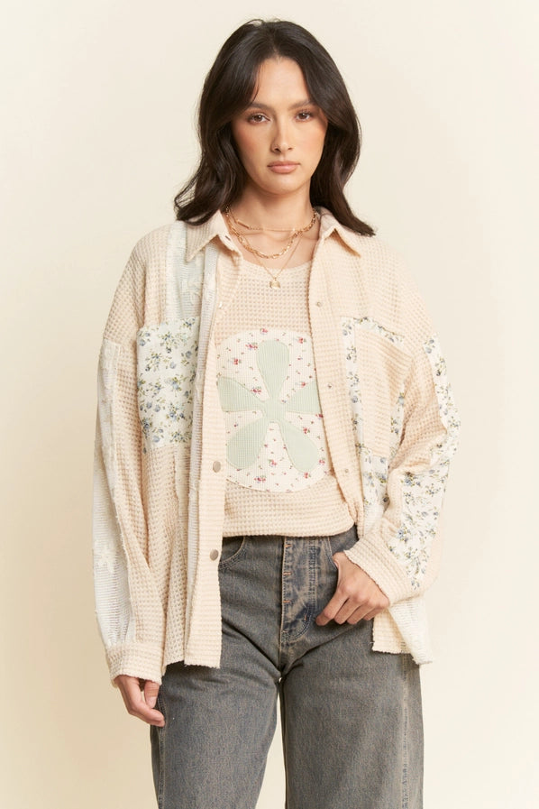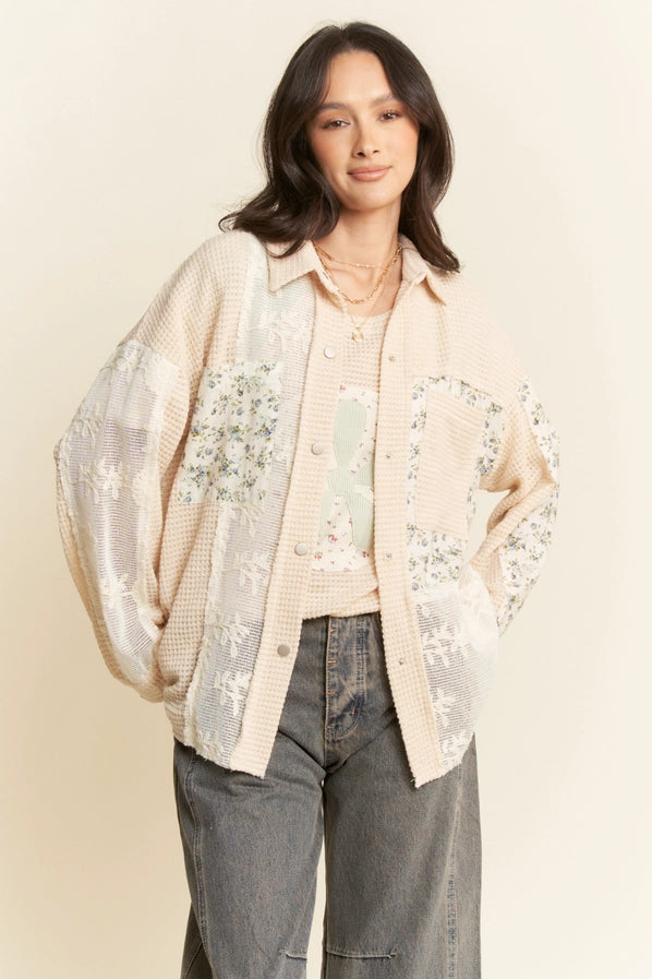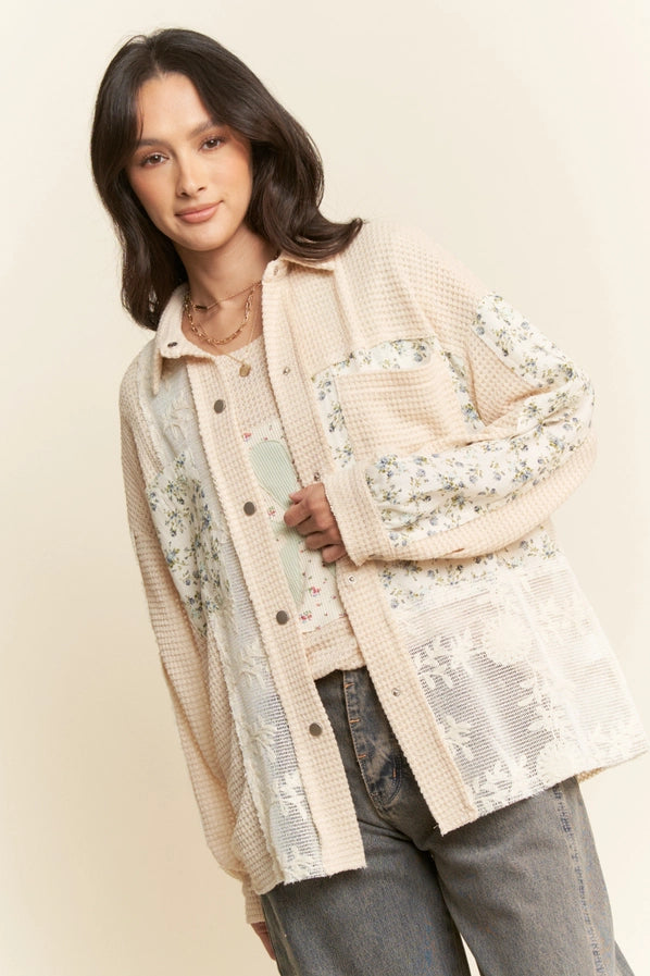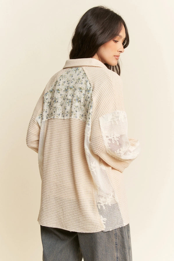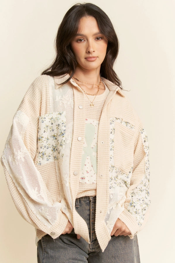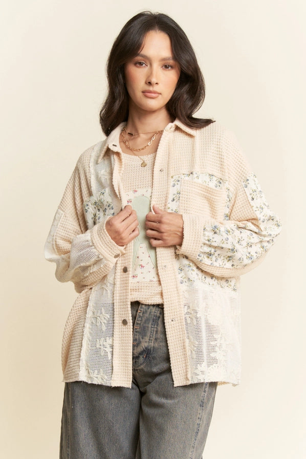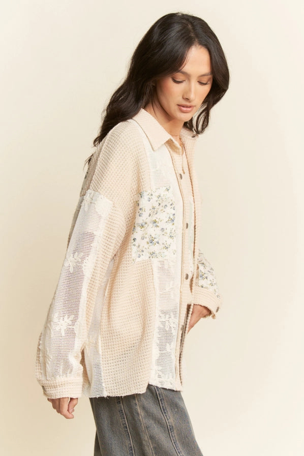 Davi & Dani Beige Multi Fabric Knit Shacket Curvy