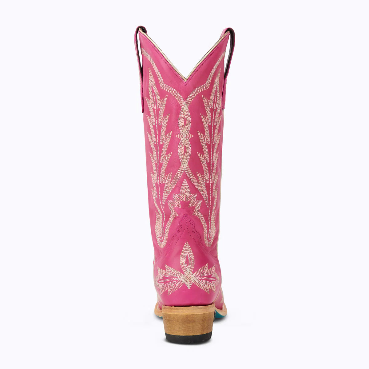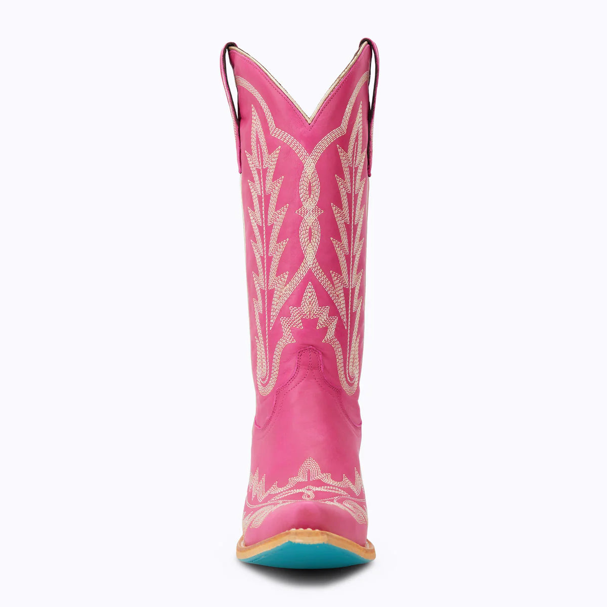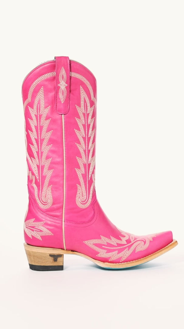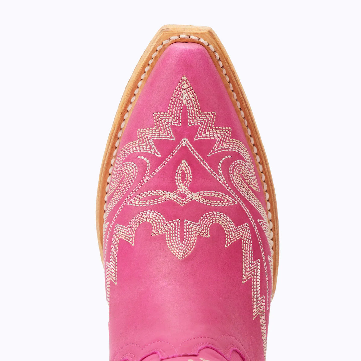 Heirloom quality boots with a core western influence. Meet Lexington in Hot Pink. The classic snip toe profile is embroidered to perfection with a twist on a traditional flame stitch.