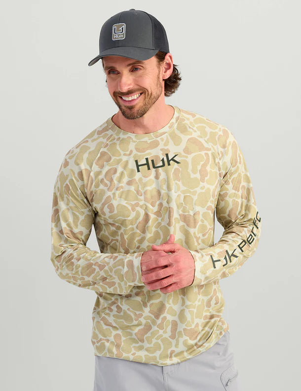 Huk Airweight KC Printed Crew in KC Sand Camo