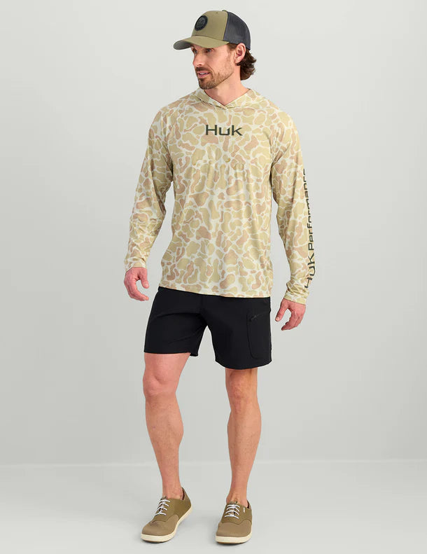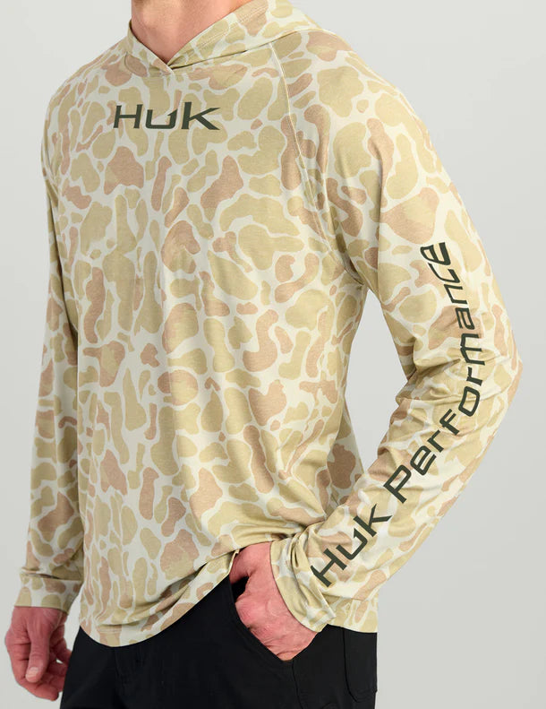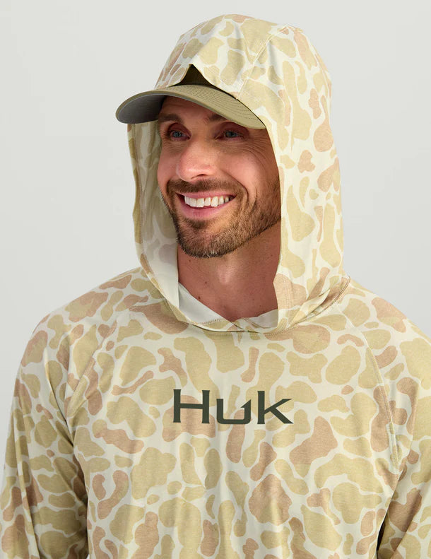 Huk Airweight KC Printed Hoodie in KC Sand Camo