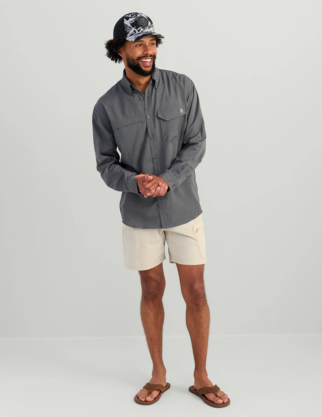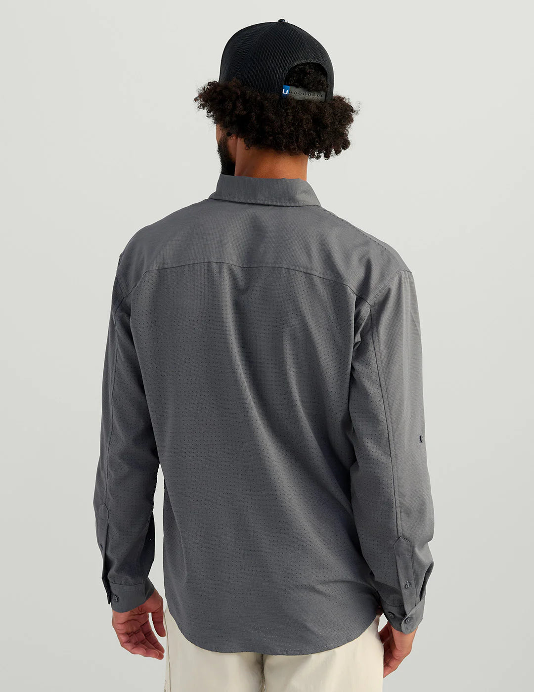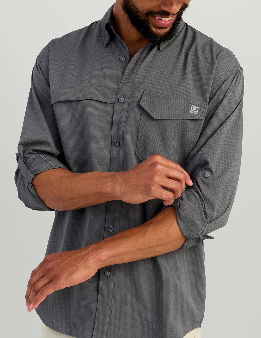 The Huk Tide Point Long Sleeve provides superior performance, designed for comfort and durability both on and off the water. This product offers 30+ UPF protection, mechanical stretch and an updated ripstop quick-drying fabric. Unlike other fishing-first button downs the Tide Point looks sharp enough you dont' have to make excuses for wearing it around town. The laser perforated back panel delivers gold standard breathability without bulky flaps and extra material and the hidden sunglasses wipe is just as clutch in the truck as on a boat.