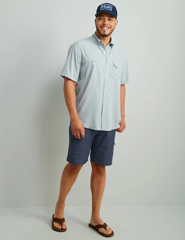 Huk Tide Point Short Sleeve Button-Down in Harbor Mist