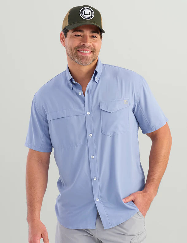 Huk Tide Point Short Sleeve Button-Down in Lightning Sky