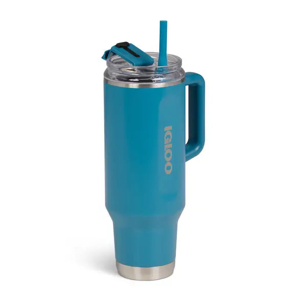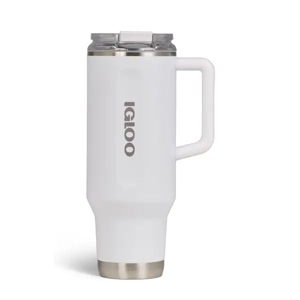 The 40 oz. Travel Mug from Igloo provides long-lasting hydration throughout the day and features a no leak straw with gasket to prevent spills. Other features include a built-in coaster, a 2-piece straw that comes apart for easy cleaning and storing, a low profile and will fit in most cupholders.