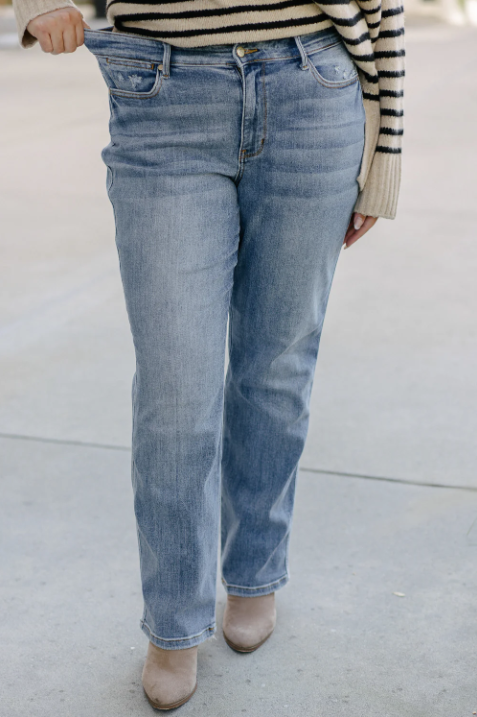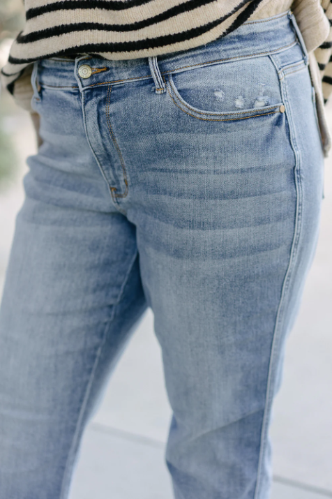Judy Blue Nia Mid-Rise Yoke Cell Phone Pocket Dad Jeans
