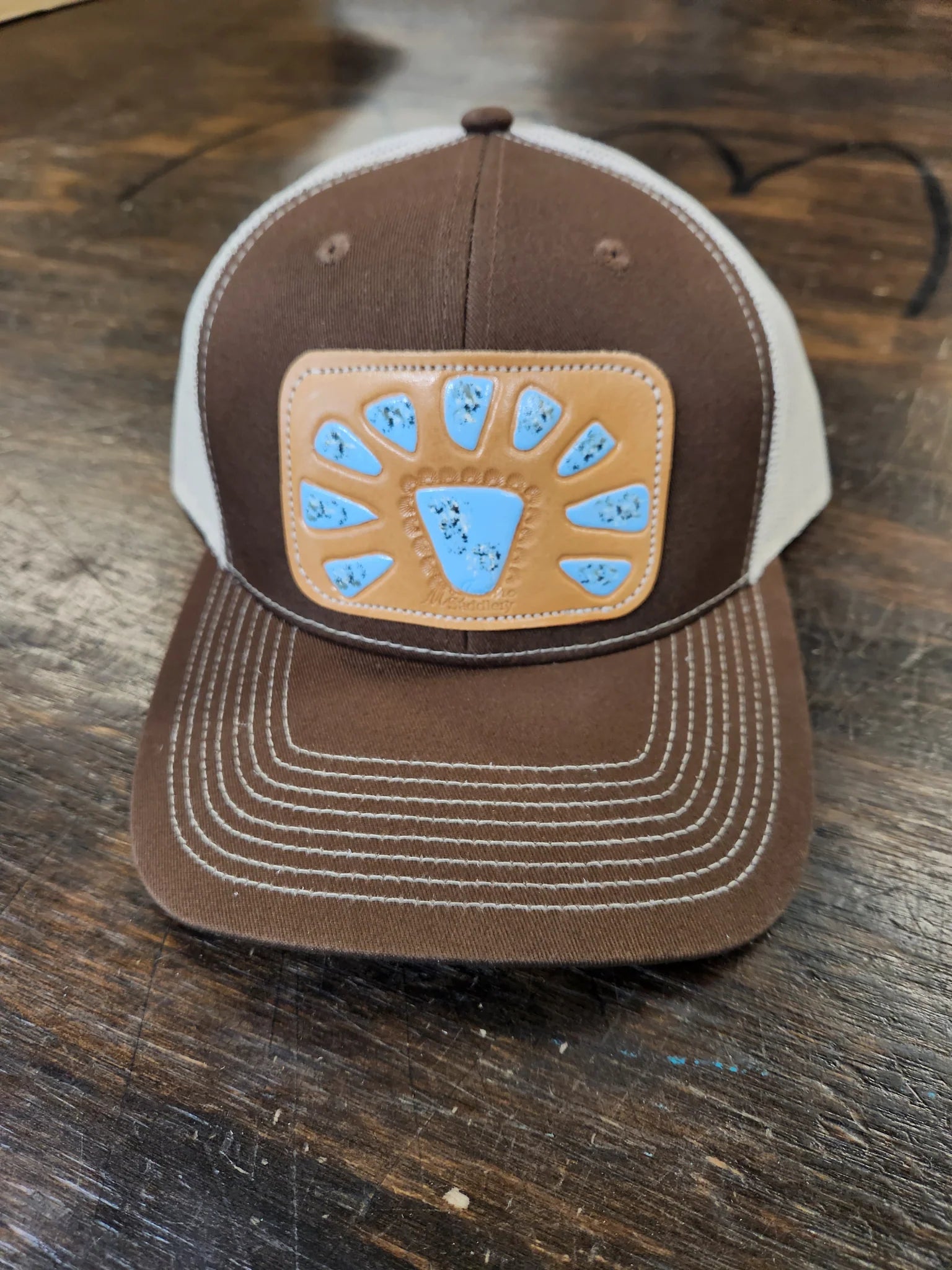 McIntire Saddlery Brown Cap with Light Blue Squash Patch