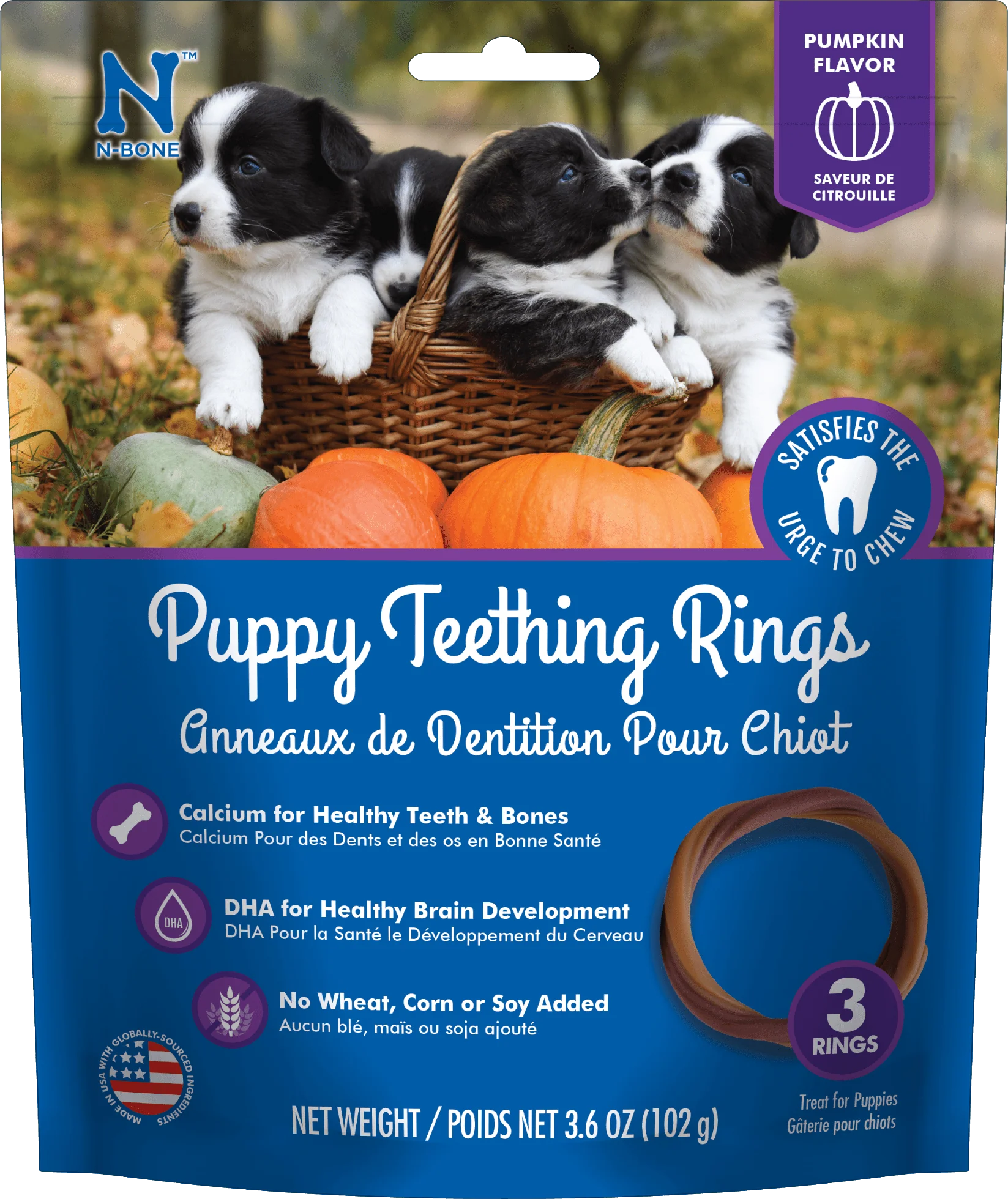 Formulated with DHA and calcium to support your puppy’s unique nutritional needs, our delicious pumpkin flavored rings are pliable and won’t damage immature teeth.