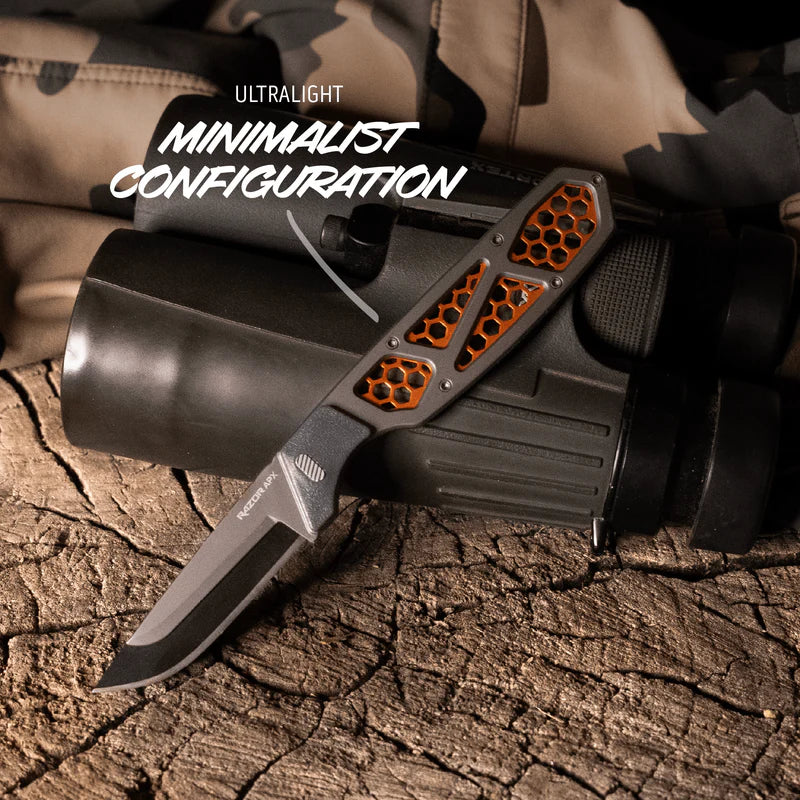 Featuring 2.5-inch Japanese 420J2 stainless steel blade, the Razor APX performs field dressing tasks with ease—then swaps out in seconds with the press of a button. No need to sharpen in the field. Just swap out a new blade and keep going.