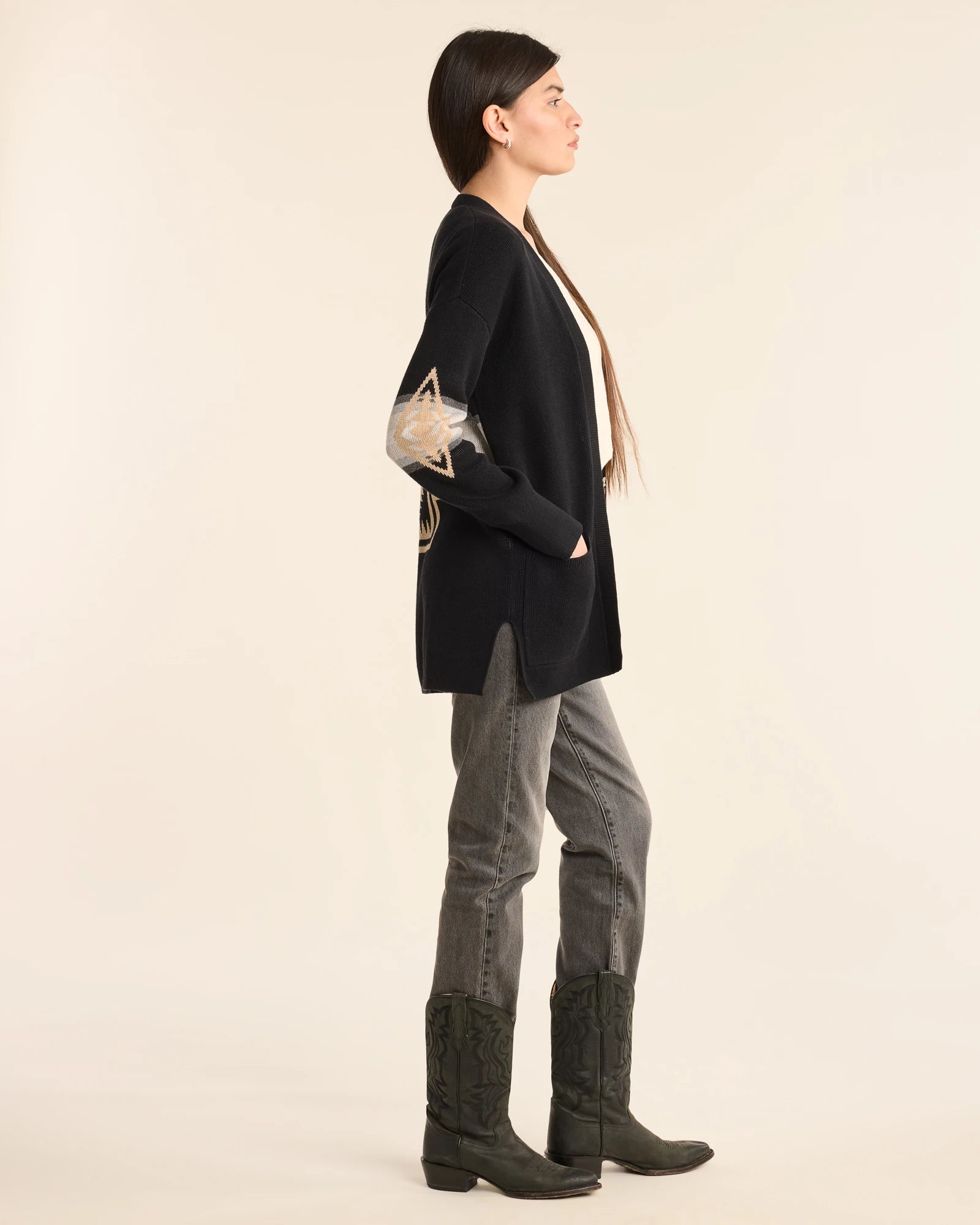 Featuring our historic Harding pattern on the back and sleeves, this open-front cardigan is made from spring-weight cotton, making it the perfect layer as the seasons change. Features two front patch pockets and side slits for easy movability.