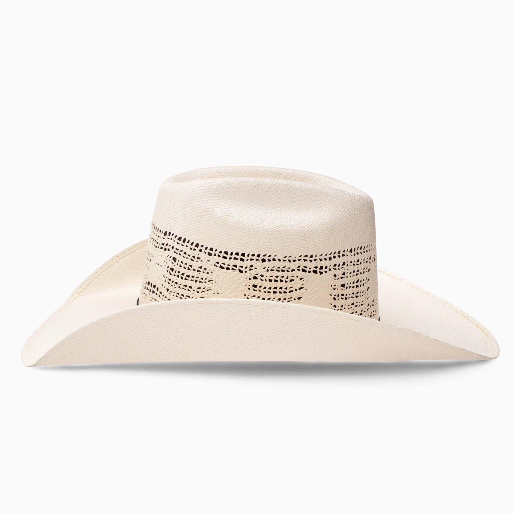 Defined by its dramatic vent pattern and 4 1/2" brick crown, the Cojo Vaquero Cowboy Hat has to be up there with Cody’s greatest hits. The brim is 4 1/4", the sweatband is Dri-Lex, the chocolate-brown ribbon hatband is adorned with Cojo’s logo. Part of our Cody Johnson Collection, this straw hat has serious star power.