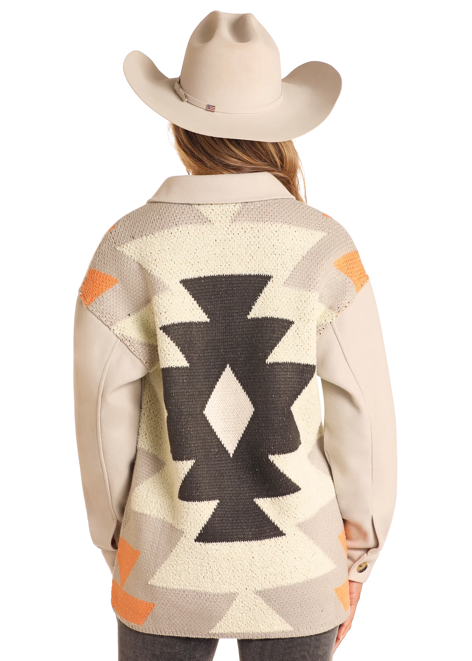 Rock & Roll Denim Aztec Knit Shirt Jacket