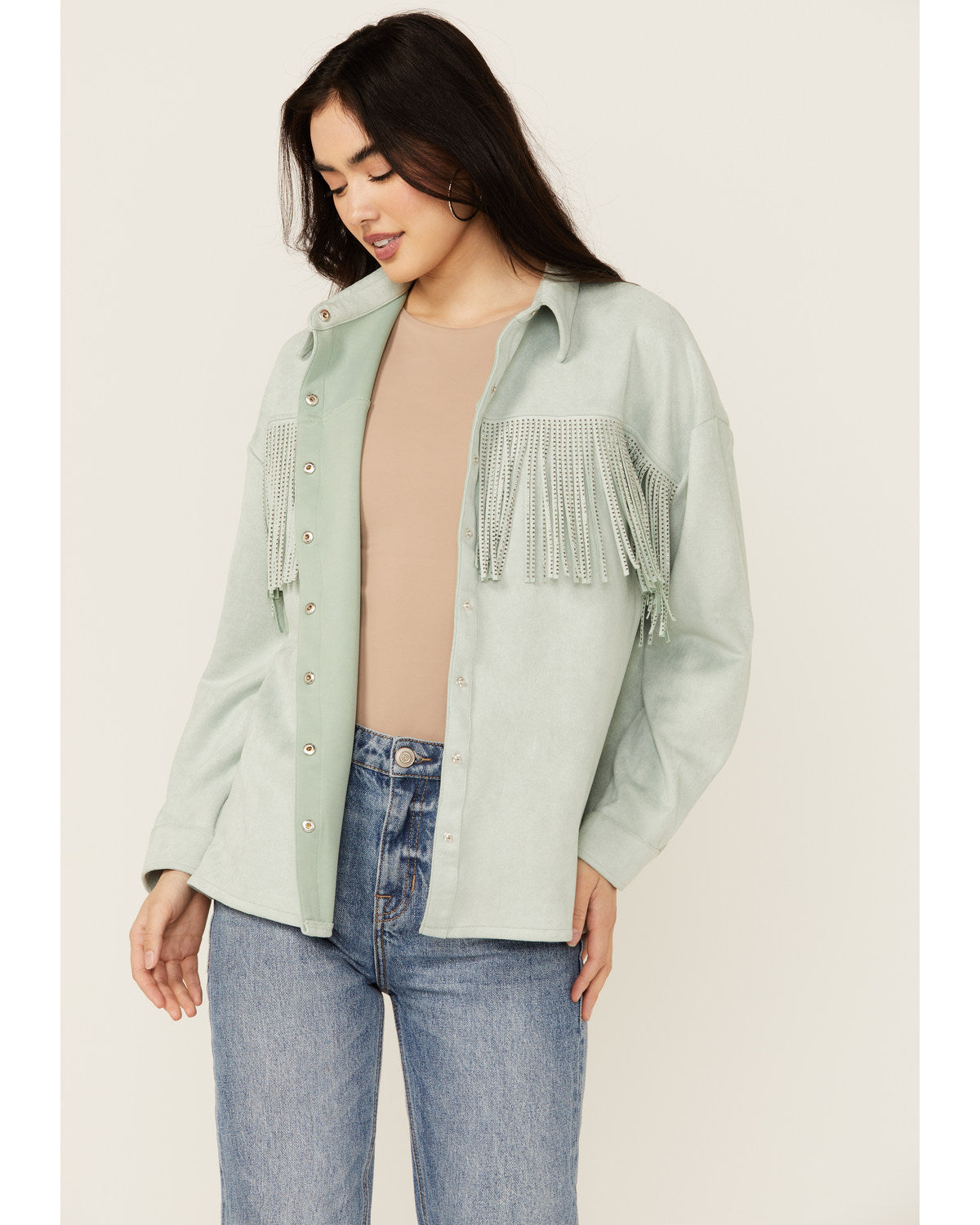 Rock & Roll Denim Faux Suede Front Fringe Shacket