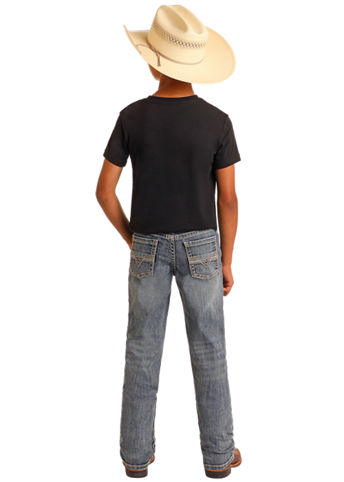 Rock & Roll Flat Seam Embroidered Revolver Jean in Medium Vintage