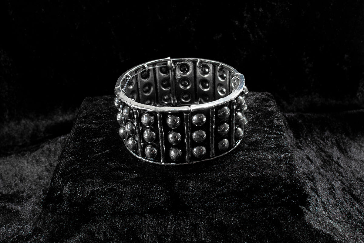 Classic look ladies Silver Strike bracelet by M&F Western Products. Burnished silver bars with small stud accents. Stretch band so it is easy to slide on and off.