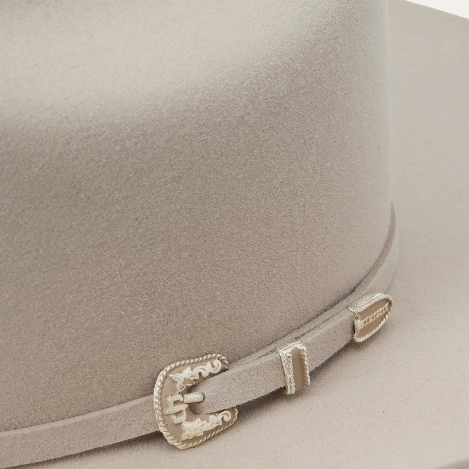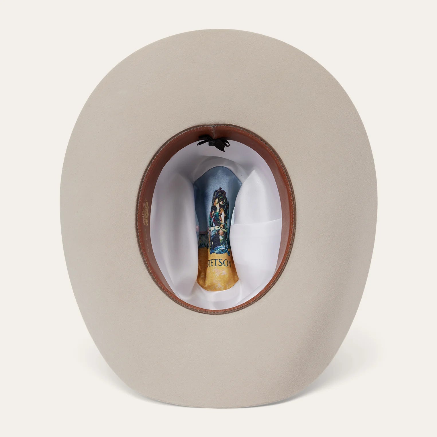 A true Stetson icon, our bestselling Skyline combines legendary quality and classic Western style in one timeless package. The Skyline is crafted from our proprietary 6X fur felt, which is prized for its durability and elegant feel, and, as with all hats that come out of our factory in Texas, each Skyline is touched by more than 100 sets of hands during production, resulting in a hat that is designed and built to stand the test of time. This edition features a 7242 profile, which translates to a 4 3/8” cattleman crown and 4 1/4” brim. Like all Skylines, it’s finished with a matching self-felt band and three-piece, silver-tone buckle. A handsewn genuine leather sweatband and full satin liner provide a time-tested fit and premium comfort.