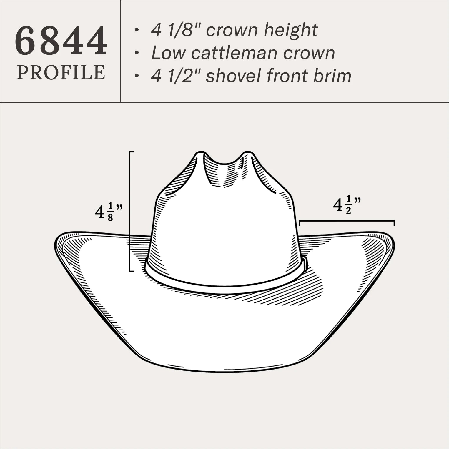Handmade in the U.S.A. from high-quality shantung, the Southpoint 10X Straw Cowboy Hat has a 4 ½” brim and a regular oval 4 ⅛” cattleman crown which is vented for maximum circulation and breathability. Its rugged Western style is enhanced by a tooled leather hat band with three-piece silver-tone buckle set.