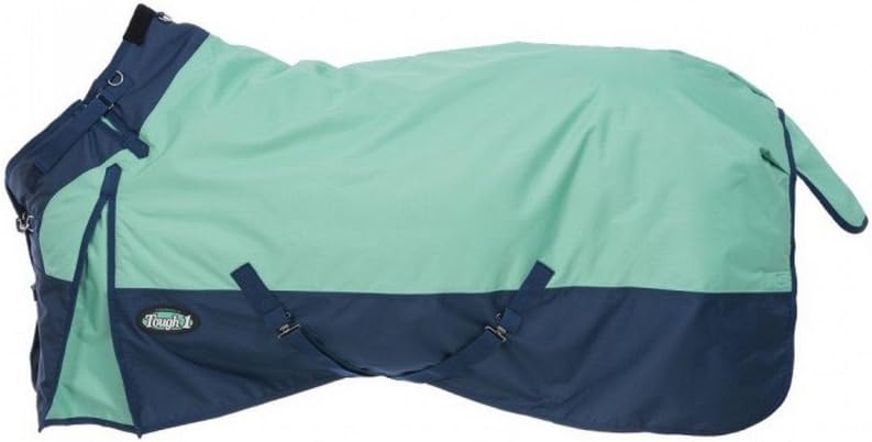 This blanket is made of a 1200 denier waterproof ripstop outer shell with a breathable lining and 300 grams of poly fill for warmth. It is designed with a Tough1® Snuggit™ strap which offers a more adjustable fit around the neck. The large shoulder gussets allow the horse freedom of movement and three dee rings at the neck offer optional neck cover attachment. The double buckle front closure design includes removable snaps and a “Quick Grip” tab for extra security. Other features include: fleece wither protection, tail flap, crossed surcingle straps with elastic ends, and adjustable/replaceable elastic leg straps.