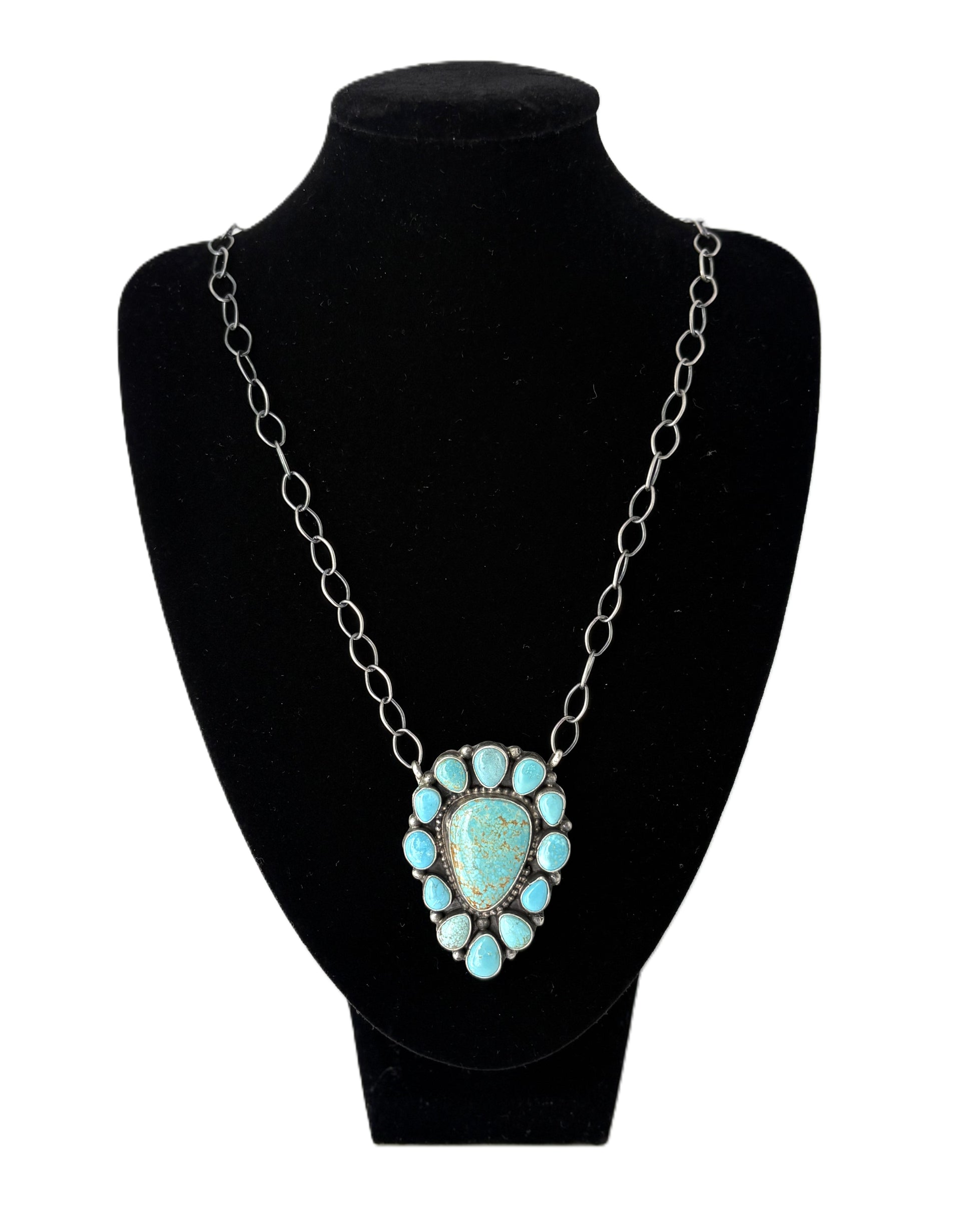Meet your new go-to turquoise. Bold, western, and just the right amount of extra, this statement pendant on a chunky silver chain pulls any outfit together in seconds. Throw it on with denim and boots and call it a day—this one does all the talking.