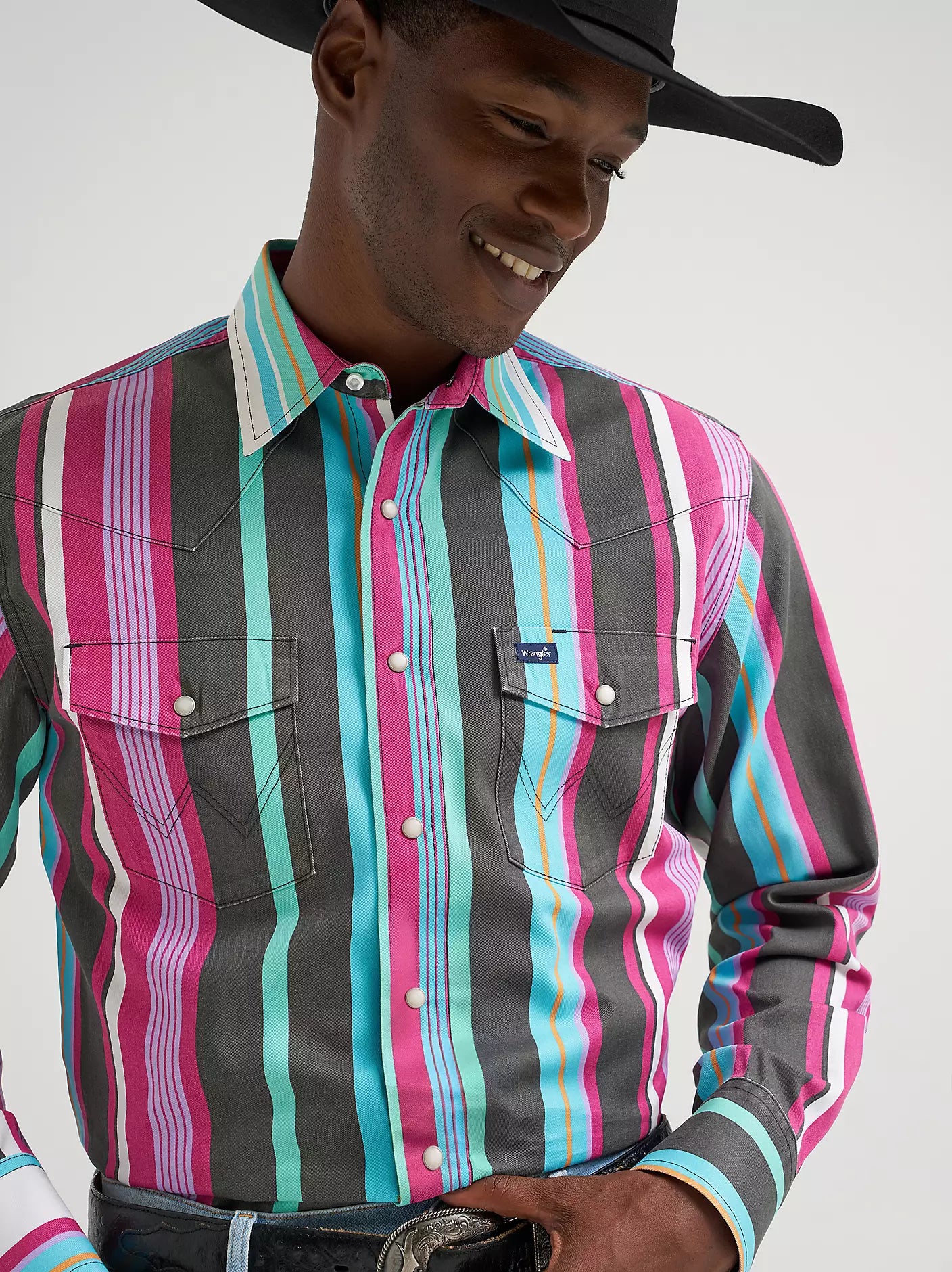 Can’t call it a comeback when the Wrangler® Brushpopper is just warming up. This shirt’s earned its stripes the hard way since 1979. Cut to move. Tough enough to last. Honest from the first stitch. But somewhere between sundown and the last call, it found a second life. This vintage-inspired Western snap work shirt kicks any outfit into next gear with its bold and colorful stripes, and no two shirts are exactly alike. Crafted from cotton and cut in a regular fit, it offers comfort from season to season. Plus, you’ll have all those iconic details, including Western yokes from front to back, chest pockets with the signature ‘W’ embroidery, and pearl snaps for easy layering when you feel like it.